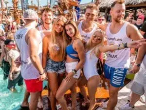 Each of the 4 large open-air clubs has a day and a night area. The day area opens daily from about 3 pm for the famous after beach parties. With pools in the dance floors, seating, sea view and of course absolute party atmosphere, these parties are a must! The after beach parties are free of charge during the pre-season in June.